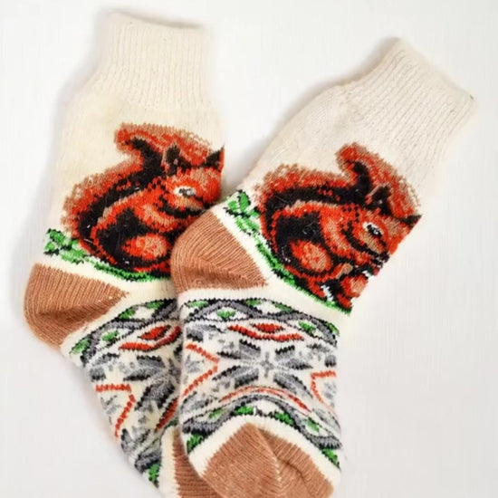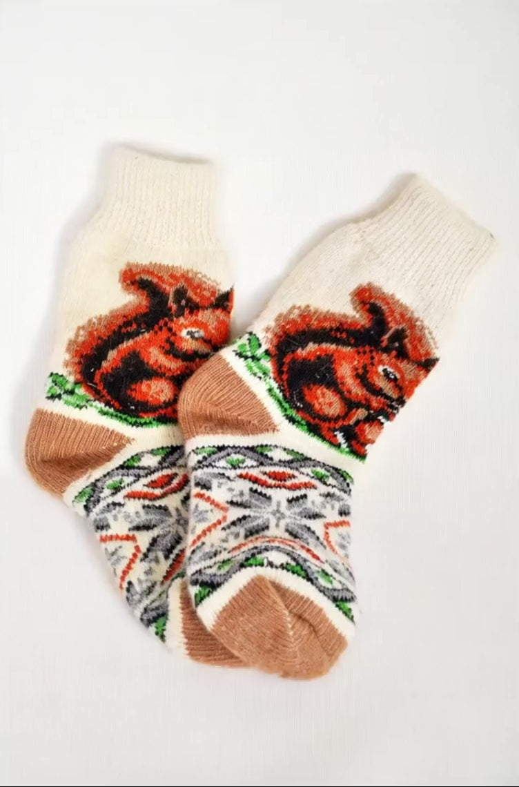 Discover our Squirrel Design women’s wool socks — warm, cozy, and beautifully knitted